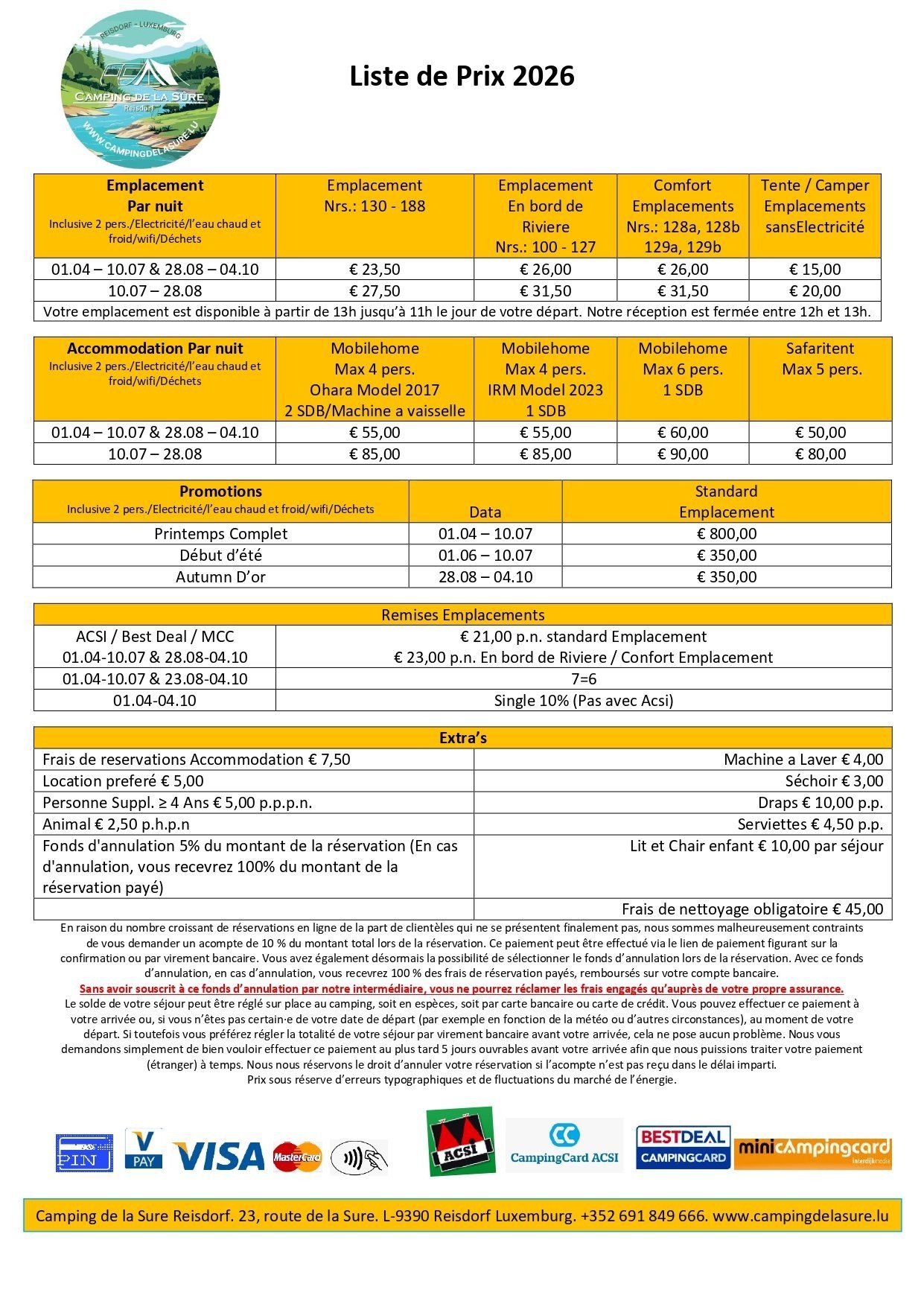 Liste de prix